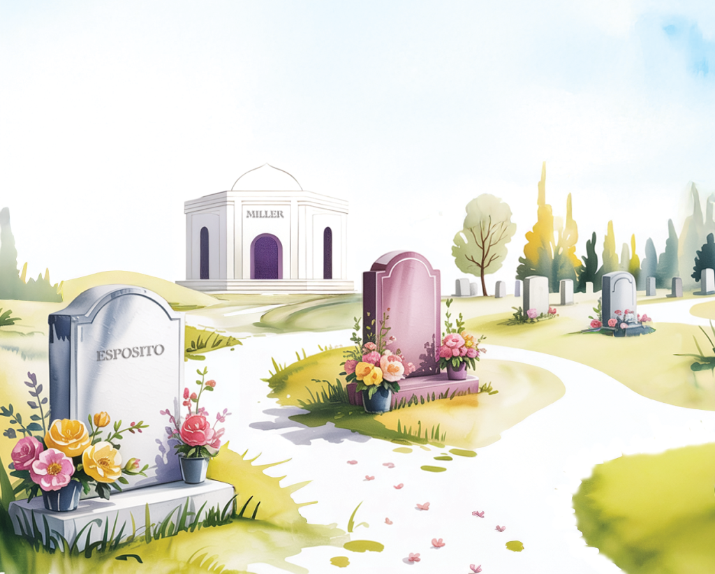 For information on cemetery guidelines regarding decorations, tributes, maintenance, etc., please scroll to the footer of this website, then select “Rules and Regulations”.